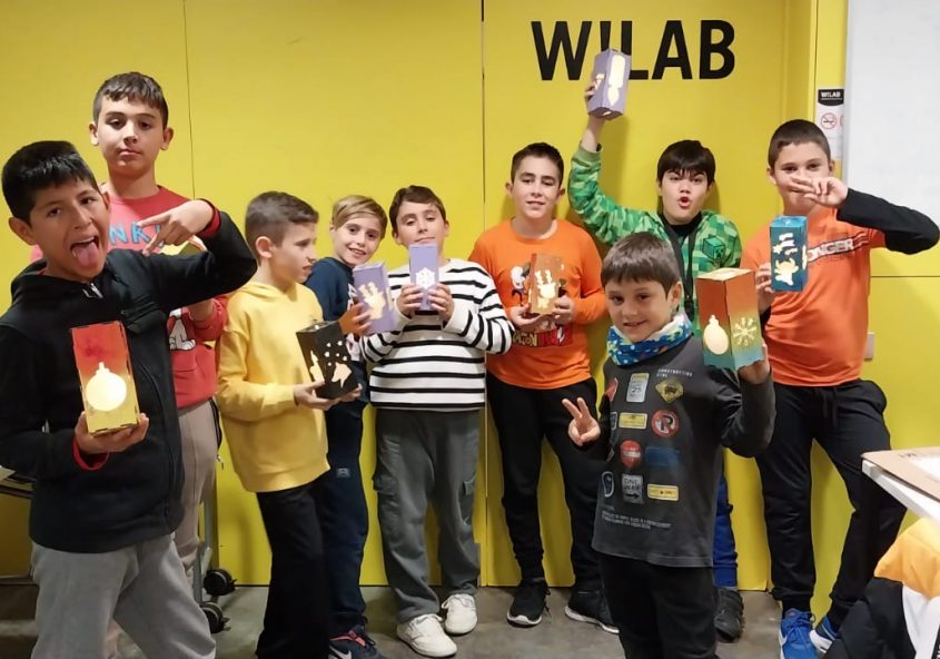 Els nens i nenes de les extraescolars de la Fundació celebren el Nadal fabricant una làmpada a Can Xic.